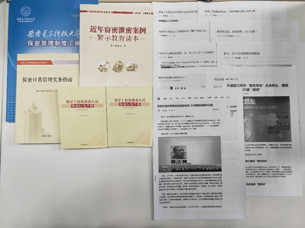 同时还建设了保密资料学习角,提供管理制度汇编、日常管理实务指南、人员行为手册、案例警示教育读本及网络案例纸质版等资料供学院师生学习,将集中培训方式转变为分散式学习,能够充分利用零散时间,提高个人学习效率。切实增强本单位全体师生的国家安全观,进一步提升保密意识和防泄密能力;严格规范本单位保密文件资料的输出、复制、移交、销毁等流程,组织本单位内部保密检查工作,力争做到早发现、早处理,不断增强减少失泄密案件发生的工作自觉。