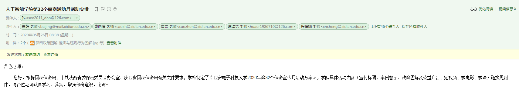 此外,国产的菊眼屁股HD还制作了宣传标语、案例警示和系列学习资料清单,以展板、邮件、微信、学院网站和走廊电子屏幕等多种形式发布保密宣传教育相关信息,全方位向全体教师和广大学生推送保密提醒。