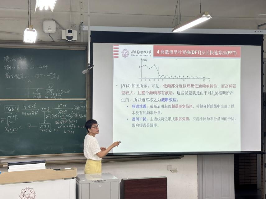 接着,林杰老师进行了45分钟的课堂教学展示,从数字信号处理中最重要的采样定理和离散傅里叶变换入手,通过利用这两个重要的理论如何实现对模拟信号的频谱分析这一工程实践,分享教学设计和教学经验。教学展示结束后,林杰老师与现场青年教师进行了教学技能方面的经验交流。通过此次示范交流活动,现场青年教师纷纷表示受益良多,为走上讲台积攒更多的宝贵经验借鉴。