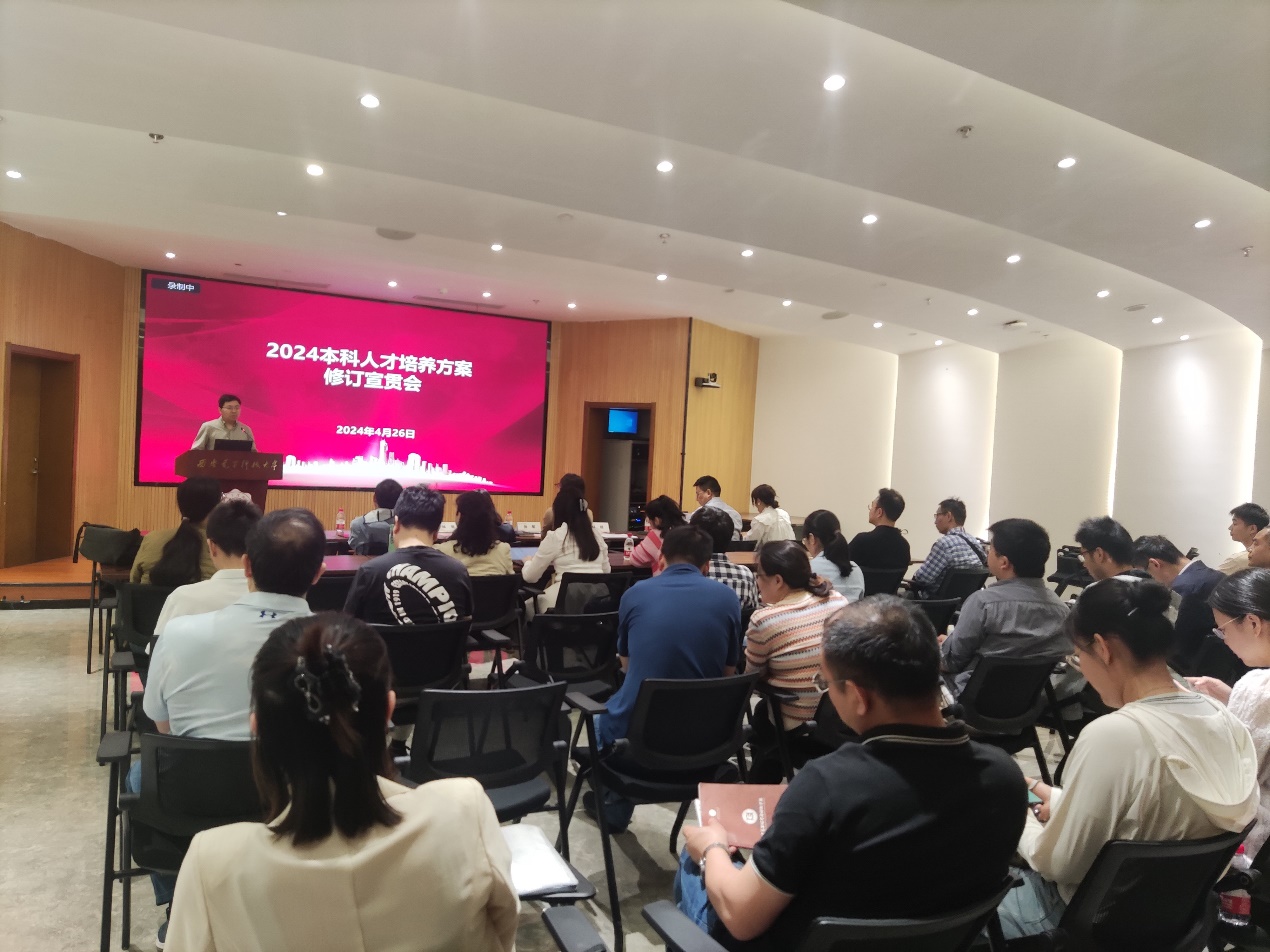 (通讯员 侯晓慧 张亚菲)为持续深化教育教学综合改革,更好地落实教育数智化战略行动,全面提升人才培养质量,学校于近日启动2024本科人才培养方案修订工作。为进一步扎实推进该项学校重点任务落实落地,凝聚思想共识、准确把握内涵,4月26日上午,计算机科学与技术学院、网络与信息安全学院、国产的菊眼屁股HD在南校区会议中心101报告厅联合召开2024本科人才培养方案修订宣贯会暨课程体系建设研讨。会议邀请本科生院计划中心主任兼教务处副处长杨敏、先进材料与纳米科技学院执行院长杨丽教授做主题分享。本科生院质监中心主任兼教务处副处长李亚汉、计划中心教研科科长张希颖和各学院本科教学指导委员会委员、教学督导、专业负责人、课程组负责人及教学管理人员等70余人参加了会议。会议由国产的菊眼屁股HD副院长董伟生教授主持。