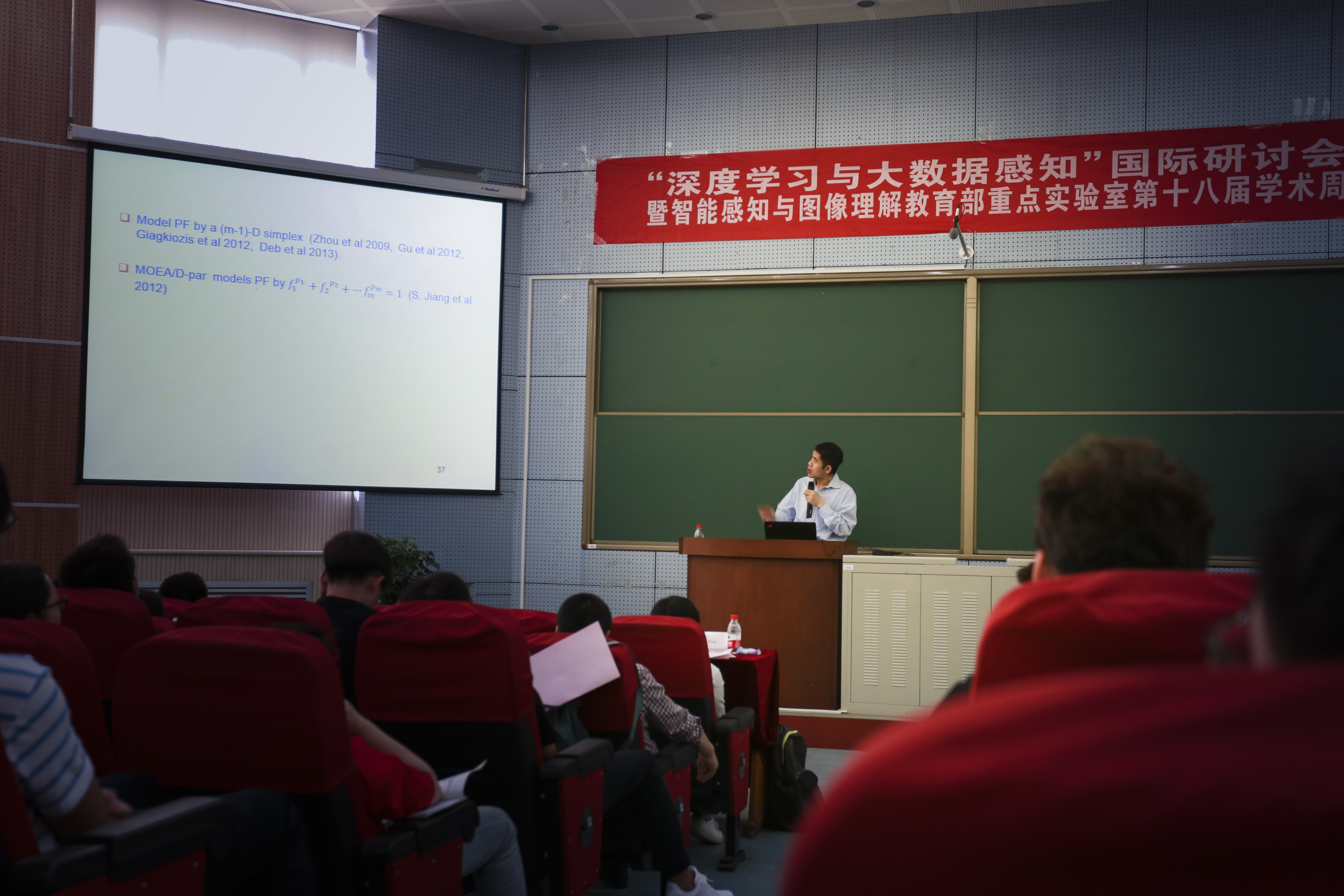 25日上午8:30分“深度学习与大数据感知”国际研讨会在西安电子科技大学侯彪教授的主持下正式开幕,在25日到28日4天的学术活动中共有45场精彩的学术报告呈现,由领域顶尖专家学者、新锐企业领导者及刻苦钻研的学生共同展现了多样化的学术理念与实践应用,每场报告都座无虚席,走道也站满了学生,报告厅成为了一片浩荡的求知之海洋,每一朵浪花都饱含着新知与思考。45场报告涉及了“基于脑认知机理的条件证据理论及其深度学习方法”、“Multi-objective Bayesian Optimization”、“高分辨率图像智能处理技术”、“Scene Representation and Classification from Remote Sensing Images Based on Deep Learning”、“深度学习影像感知及解译”、“数据驱动的进化优化”、“面向机器人灵巧操作的认知传感与大数据处理”、“大数据、云计算、物联网-计算智能的研究前沿与应用”、“变分贝叶斯联合优化及应用”、“头脑风暴优化算法”、“Online Ensemble Learning of Class Imbalance Data”、“Current Hot Topics in Many-Objective Optimization”、“Online Growing Neural Gas for Anomaly Detection in Changing Surveillance Scenes”、“类脑计算的理念与实践”、“复杂场景中人群行为的研究及其应用”、“Remote Sensing and Media”、“协同过滤算法关键性技术及其稀疏性研究”、“概率分类学习”、“无人车场景计算与自主运动”、“大数据时代模式识别的机遇与挑战”、“语义通讯”、“What Can Evolutionary Algorithms Do on Complex Network”等各科研领域与课题。