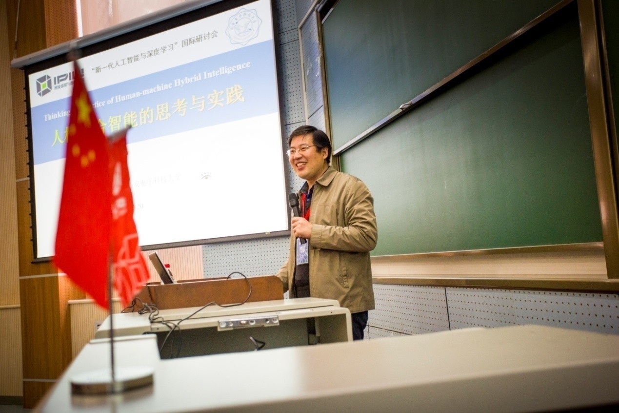 20日上午,“新一代人工智能与深度学习”国际研讨会暨第十九届学术周在智能感知与图像理解教育部重点实验室副主任侯彪教授的主持下正式开幕,为期3天的学术活动安排了37场精彩的学术报告。 报告的内容涉及 “记忆与序列决策的学习方法初探”、“Self-paced cotraining”、“物联网+人工智能:机会与挑战”、“探测与成像图像处理技术”、“生物医学成像中的反问题”、“贝叶斯网络学习理论及应用”、“基于深度学习的文本阅读理解”、“基于深度卷积神经网络的高光谱图像分类研究”、“人机混合智能的思考与实践”、“临近空间飞行环境在线检测和自适应通信信号处理”、“面向图像分类的有监督降维学习”、“仿声成像与识别”、“智能电磁频谱利用与控制”、“Viewing Bigger Pictures Promotes Happier Mood: A psychological explanation and an example in the real world”、“Data-Driven Surrogate-Assisted Multi-Objective Evolutionary Optimization of A Trauma System”、“一种新型智能计算模型-人工雨滴计算方法”、“基于稀疏表示和全局联合字典模型的遥感图像超分辨”、“高光谱遥感影像解译”、“基于深度学习的极化SAR图像分类”、“从算法到产品-用于商业智能的人脸识别产品研发案例分享”、“多模态人机交互和感知”、“创新的逻辑”、“基于分解的矩阵范数最小化的算法及应用”、“加速随机ADMM方法及应用”、“基于FPGA的深度学习应用解决方案”、“你是谁”、“Vital Nodes Identification via MOEA”、“When Evolutionary Computation Meets Complex Network”、“基于多尺度全卷积网络,条件随机场和先验素描信息的SAR图像语义分割”、“Discovering Latent Aspects for Diversity-induced Image Retrieval”、“A novel siamese-like hybrid network framework for remote sensing image feature matching”、“Multi-Scale Object-based F-CNNs with Weakly Supervised Learning for Remote Sensing Images Object Detection”等,为师生们带来了人工智能领域最前沿的知识。