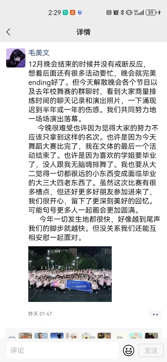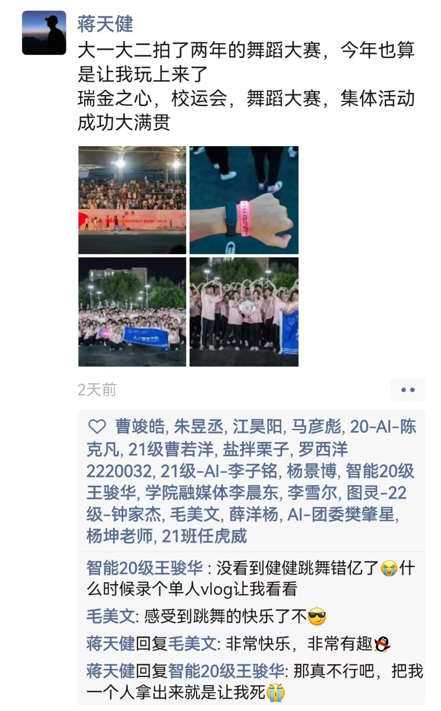 以舞之名,传递热情。此次广场舞大赛不仅响应了国家建设体育强国的目标,塑造良好的学校环境,更加展现了同学们积极进取、奋发有为的精神面貌。