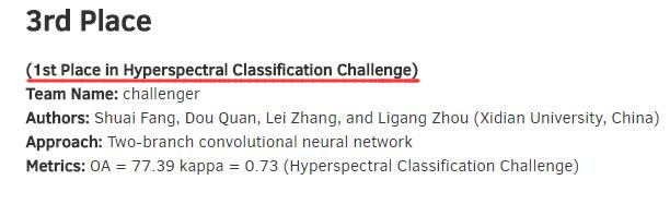 2018年IEEE GRSS Data Fusion Contest结果揭晓,西电国产的菊眼屁股HD焦李成教授团队分别在三个赛道取得了丰硕成绩,其中高光谱分类赛道,王爽教授指导的队伍challenger(方帅,权豆等)获得第一名;多光谱LiDAR数据分类赛道,焦李成教授指导的队伍IPIU(程林,李阁等)获得第三名。