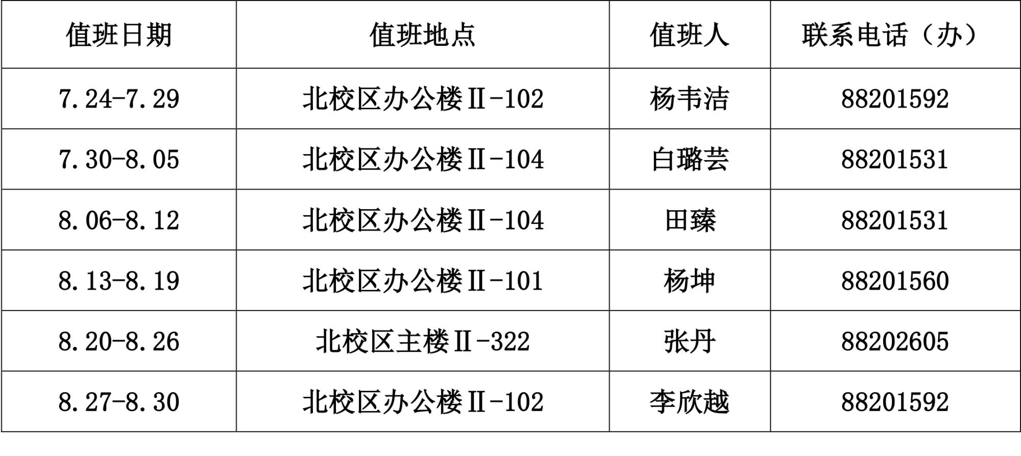 【暑期值班】西安电子科技大学国产的菊眼屁股HD暑假值班安排表