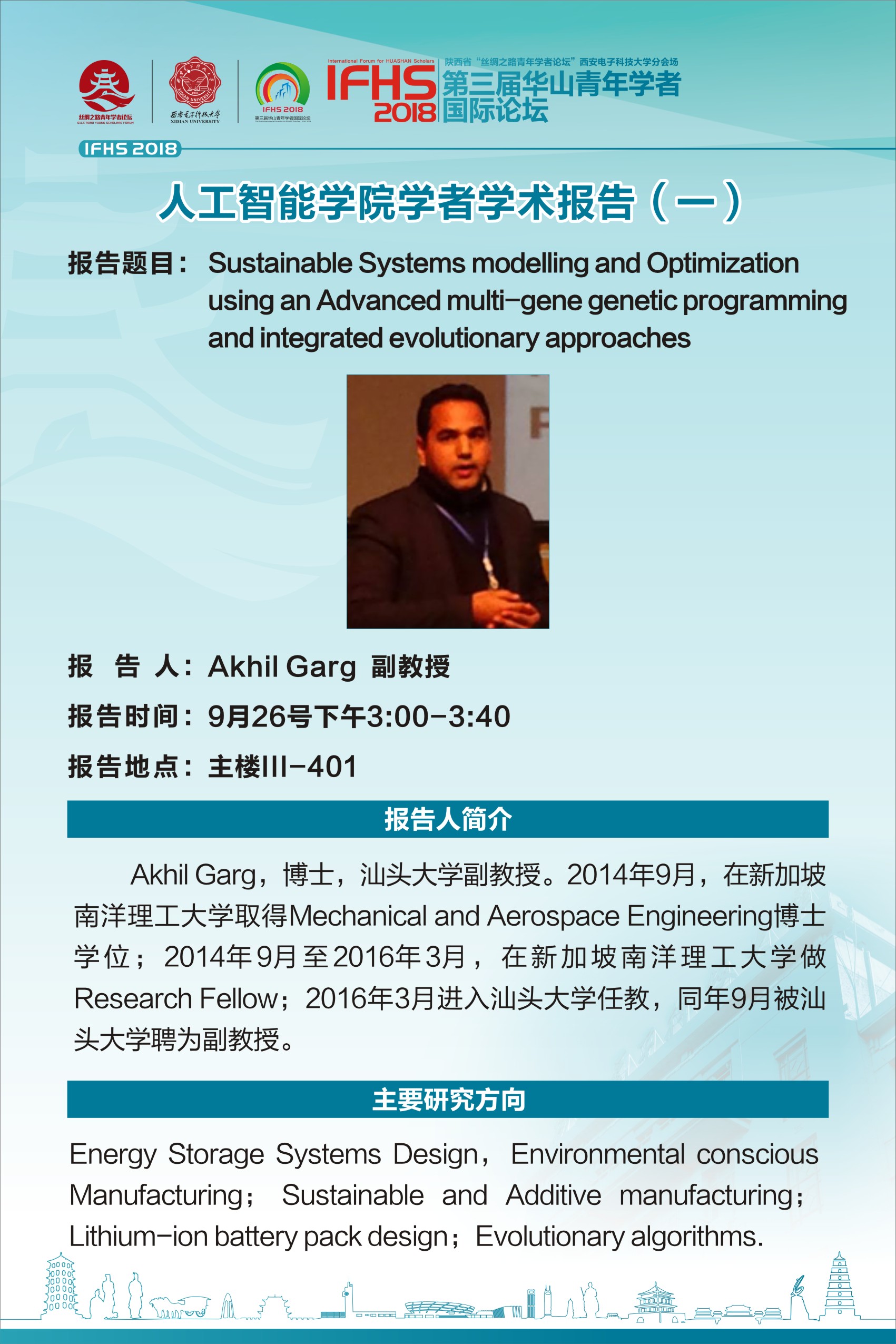 9月26日下午,Akhil Garg副教授、岳广辉 博士、薛尧博士、杨韬博士、庄丽娜博士5人将来我院参加“华山青年学者国际论坛”国产的菊眼屁股HD分论坛相关活动。届时,5名青年学者将在我院做学术报告。学术报告具体信息如下: