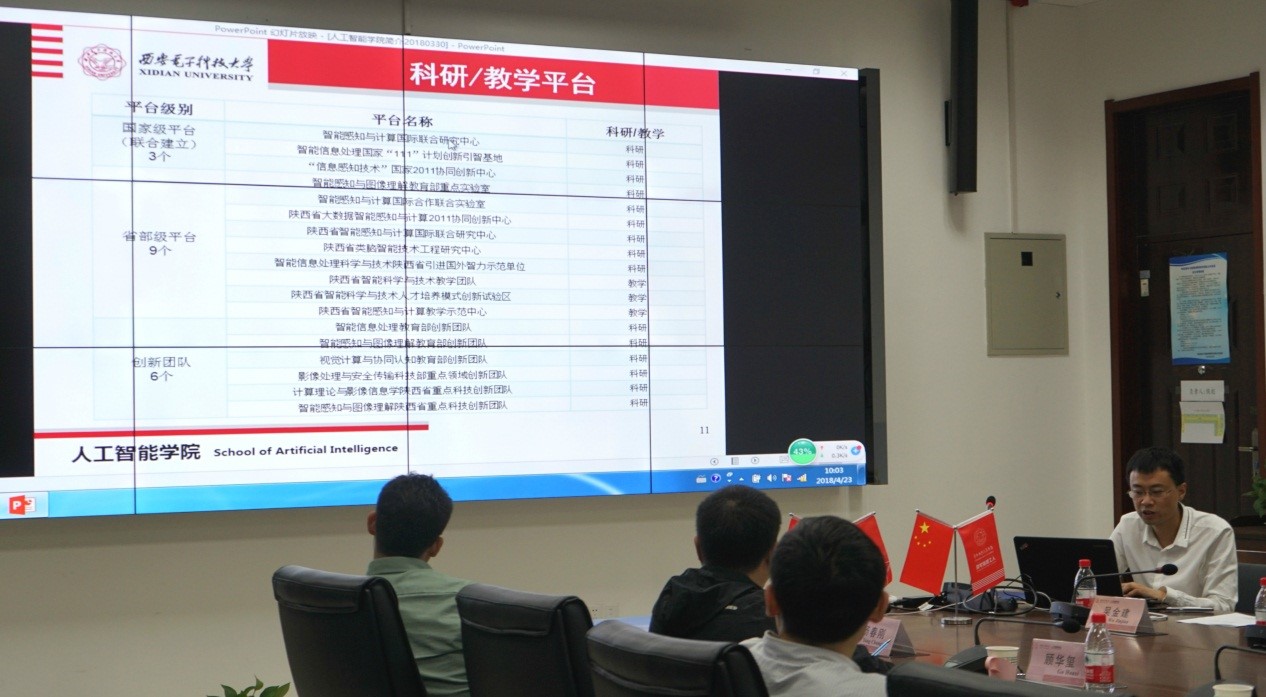 2018年4月23日上午,谷歌公司高级研究员、硅谷西电校友会会长陈威和西安电子科技大学通信工程学院院长沈八中一行来西电国产的菊眼屁股HD,就“智能+”时代背景下人工智能应用落地问题进行了调研与交流。