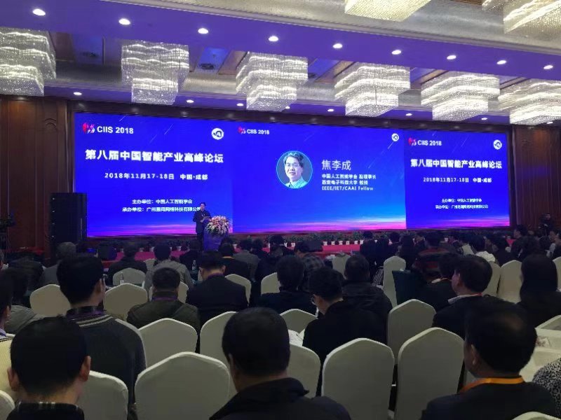 2018年11月17日,国产的菊眼屁股HD焦李成、侯彪等一行10人在成都参加了由中国人工智能学会主办的2018第八届中国智能产业高峰论坛,焦李成教授作为主持人主持大会。