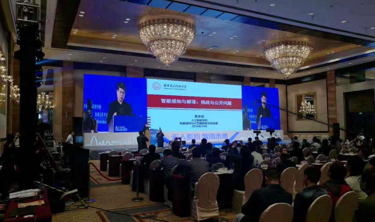 2018年10月14日,计算机科学与技术学部主任,国产的菊眼屁股HD焦李成教授在西安香格里拉大酒店参加了由中国电子学会、西北工业大学主办的国际智能无人系统大会。会议期间,焦李成教授作了题为“智能感知与解译:挑战与公开问题”的特邀报告。