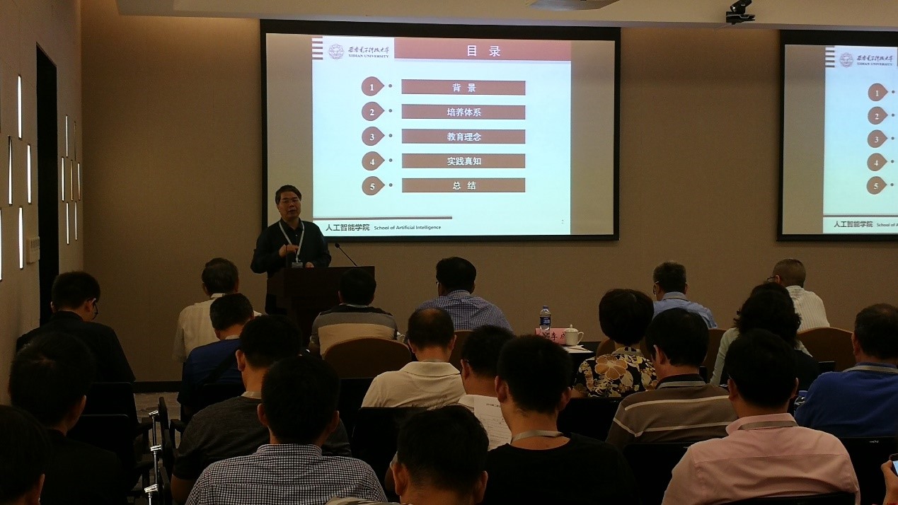2018年9月22日,计算机科学与技术学部主任,国产的菊眼屁股HD焦李成教授在南京参加了由中国软件行业协会智能应用服务分会、江苏省人工智能学会主办的人工智能产教融合研讨会。会议期间,焦李成教授作了题为“人工智能国际化创新人才的培养与实践 ”的特邀报告。