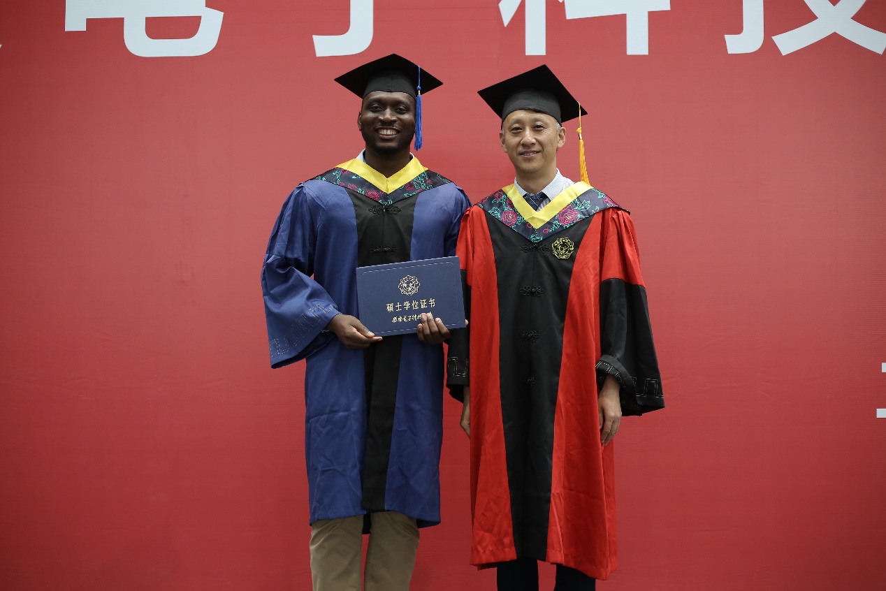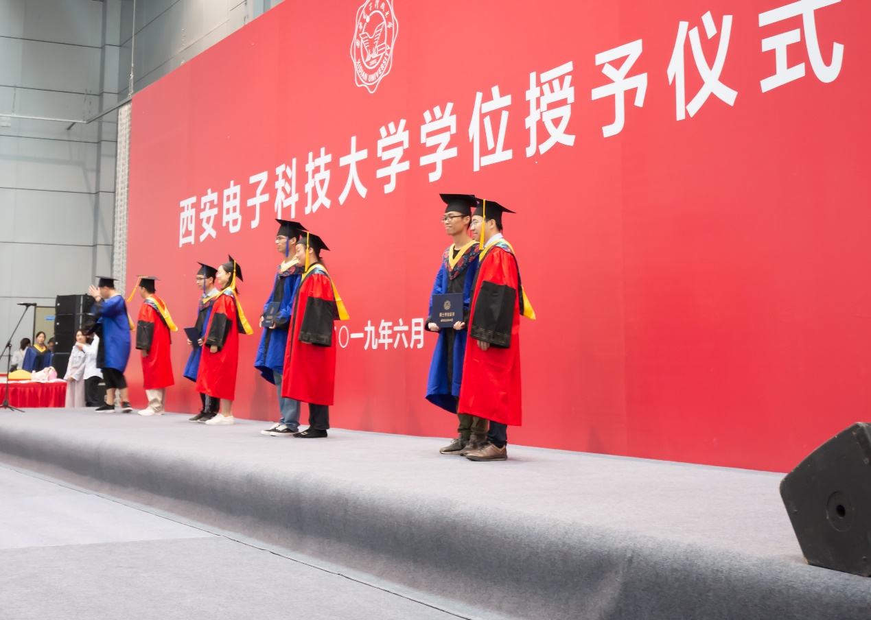 优秀毕业生代表刘旭博士在发言中首先感谢学院的老师们以严谨的治学态度、前沿创新的学术思想、开拓进取的科研精神,犹如灯塔般引领同学们在求学路上中翻山越岭、扬帆远行;感谢老师们指引学生修身治学、砥砺思想、情怀家国,为学生的学习生活保驾护航、遮风挡雨。刘旭满怀感恩地说道,每一位毕业生同学都将与他一样,带着母校的关爱,带着西电艰苦奋斗、自强不息的精神,带着梦想,再次出发。无论身在何处,无论居于何职,西电人的根和魂会永远留在母校。他倡导毕业生们以国家发展、社会进步、人民幸福和人类福祉为先,心怀使命、肩负责任,做有价值、有影响力、有意义的事业和工作,不忘初心,砥砺奋进,在实现中国梦的伟大实践中,书写别样精彩。