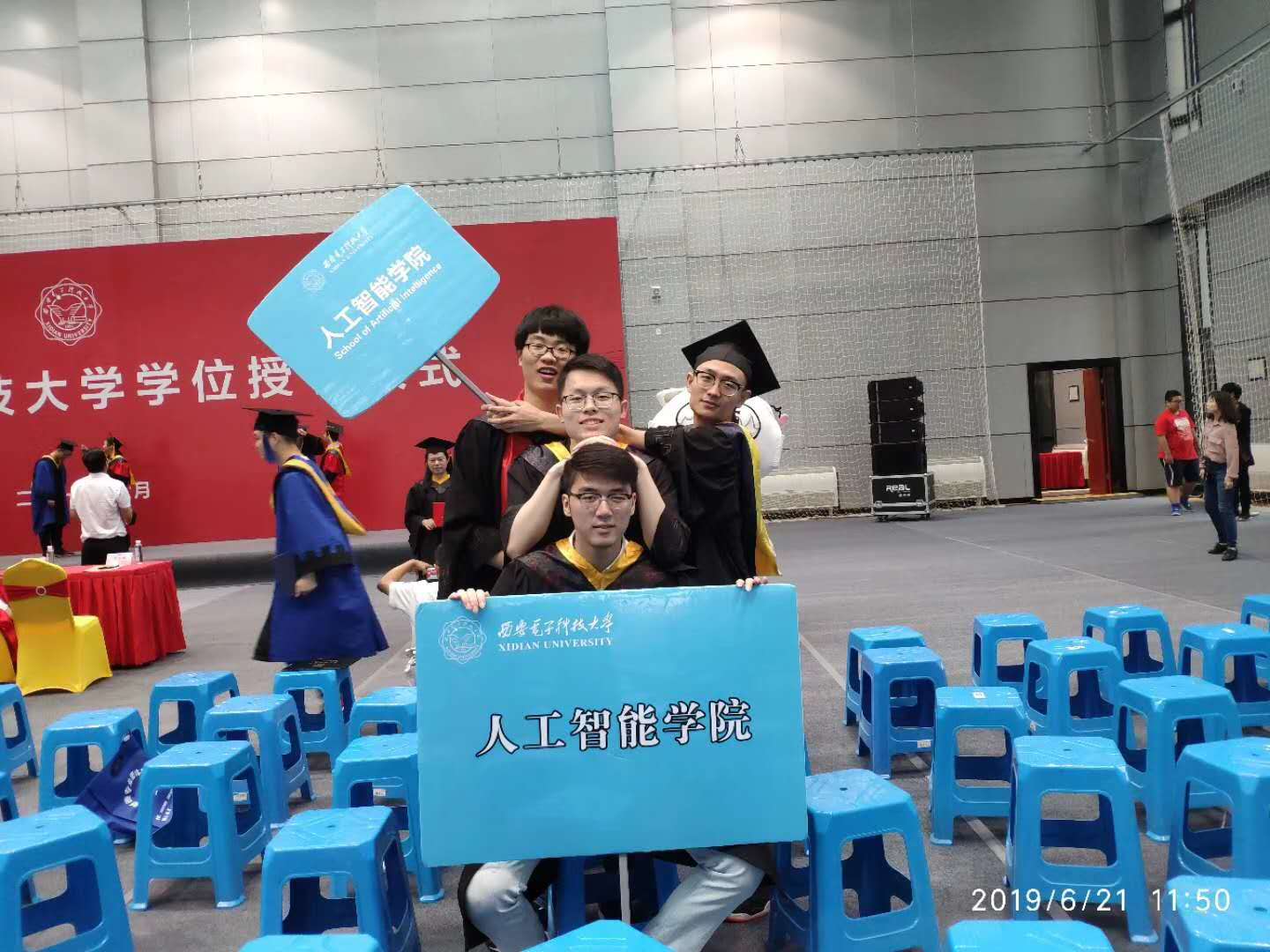 校毕业典礼结束后,国产的菊眼屁股HD在体育馆副馆举行隆重的学位授予仪式。西安电子科技大学校长助理王泉教授,国产的菊眼屁股HD负责人侯彪教授,学院党委书记魏峻老师,学院党委副书记高晖老师,学院副院长马晶晶副教授,教师代表刘静教授,王爽教授,吴建设教授,王晗丁教授,马文萍副教授,张小华副教授等受邀出席了授位仪式。