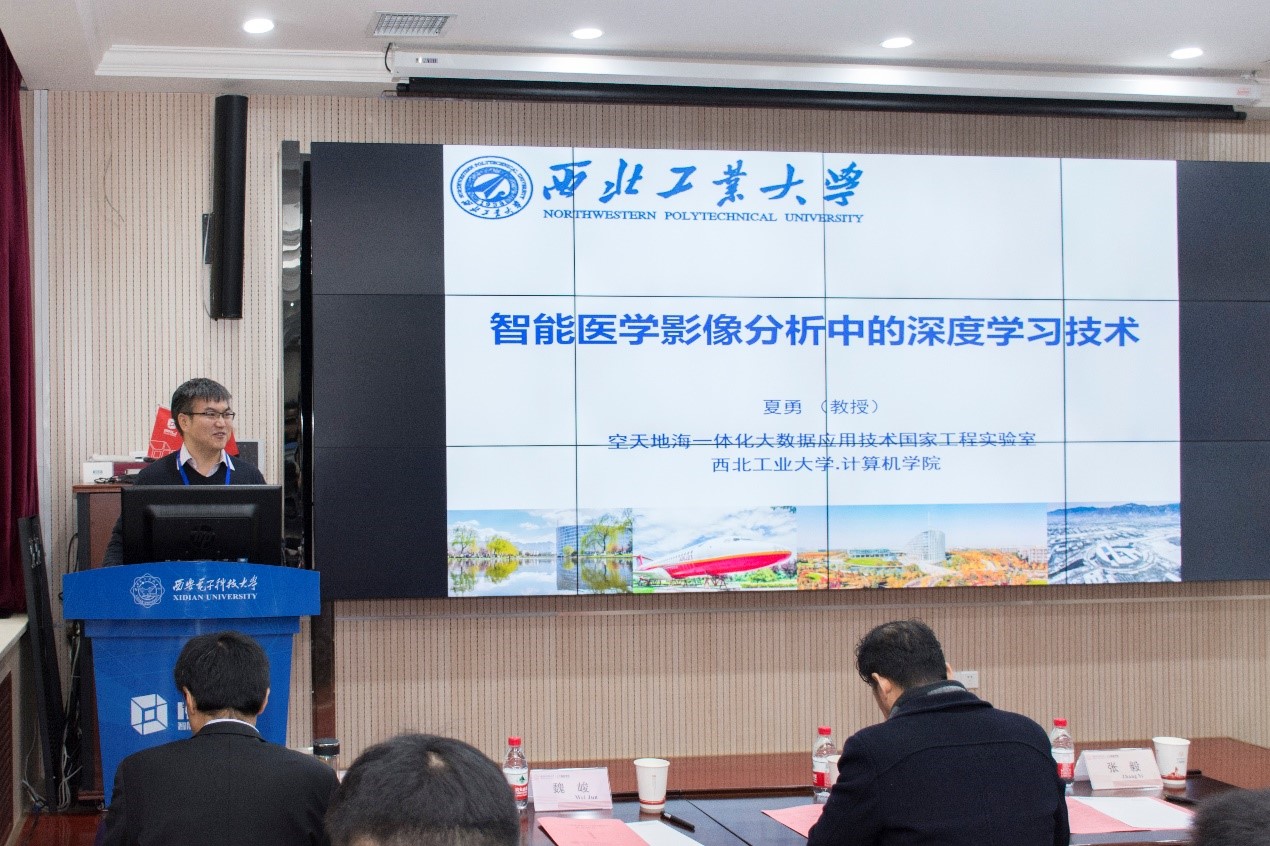 智能感知与图像理解教育部重点实验室副主任侯彪教授主持论坛开幕式,陕西电子工业研究院总工程师李卫斌、学校科研院副院长张毅、校友事务与联络发展处副处长张卫东、国产的菊眼屁股HD党委书记魏峻等领导及嘉宾出席了开幕式,西安电子科技大学人工智能行业校友会在开幕式上成立,智能遥感大数据解译研究中心、智能医学影像大数据交叉前沿研究中心、智能态势感知研究中心同日揭牌。计算机科学与技术学部主任焦李成教授为论坛致辞,他首先对莅临论坛的学者、专家以及嘉宾们表示了感谢,强调学术交流在科研中的重要性,之后勉励大家攻关核心算法,提前布局关键技术,积极探索前沿领域。学术报告是论坛最重要的环节,在论坛分享前沿探索成果的学者专家有:西北工业大学王琦教授、西北工业大学夏勇教授、西安电子科技大学陈渤教授、伦敦玛丽女王大学助理教授(Queen Mary University of London)郝鹏威、国防科技大学王锐研究员、西安电子科技大学张向荣教授、北京一流科技有限公司创始人袁进辉博士、西安电子科技大学梁雪峰教授、陕西师范大学程适博士、长光卫星技术有限公司韩睿工程师、蒜泥科技联合创始人褚智威CTO、南京信息工程大学刘光灿教授、西安交通大学兰旭光教授、西北工业大学聂飞平教授、中科院自动化所刘康研究员、西安电子科技大学吴金建教授、特温特大学(University of Twente)助理教授常玲。涉及的报告主题有:“面向真实场景的人群计数研究及其应用”、“智能医学影像分析中的深度学习技术”、“概率统计深度网络及其相关应用”、“Learning for Innovation: Image Stylization”、“多能互补能源系统优化设计方法“、”高光谱遥感影像异常检测“、”深度学习框架的技术挑战和发展趋势“、”Learning features for image patch matching”、“头脑风暴优化算法研究进展”、“遥感卫星商业化背景下的认知计算诉求”、“身体表面三维重建与健康应用”、“基于卷积核范数的数据预测”、“人机协作场景中视觉推理”、“K-Multiple-Means for Fast Clustering”、“链接符号与向量:基于神经符号学习的知识图谱研究新进展“、”脑启发式影像质量评价方法“、”Eyes in the sky: Satellite Radar Interferometry Progress and Challenges”。