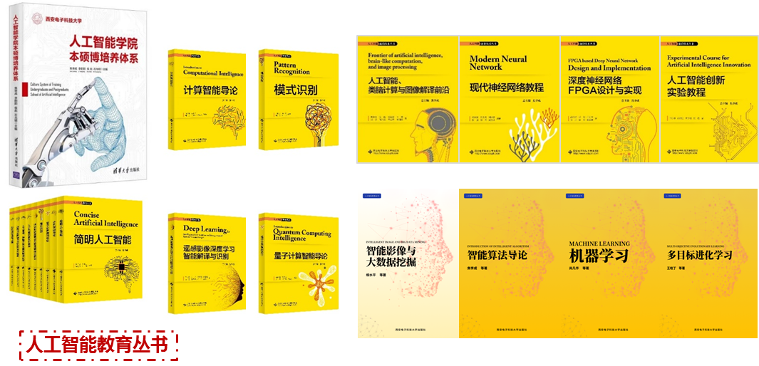 学术研究的开拓和传承需要人才的支撑,为此,西电人工智能与模式识别团队早在20世纪90年代就开始为培养人工智能人才谋篇布局。他们先后出版了多部填补国内人工智能相关领域理论空白的书籍,启蒙了一代又一代的AI领域研究者。1990年,焦李成教授撰写了我国第一部神经网络专著《神经网络系统理论》,雷达“裁判长”保铮院士为其作序,由西安电子科技大学出版社出版,被300多所高校选为教材和参考书;我国第一部免疫优化专著《免疫优化计算、学习与识别》,第一部多尺度理论系列书籍《自适应多尺度网络理论与应用》与《图像多尺度几何分析理论与应用》,第一部智能SAR图像处理专著《智能SAR图像处理与解译》,第一部深度学习理论著作《深度学习、优化与识别》等均出自西电人工智能与模式识别团队。此外,团队还在国际上出版了《Coevolutionary Computation and Multiagent Systems》,《Evolutionary Computation and Complex Networks》,《Brain and Nature-Inspired Learning, Computation and Recognition》,针对新一代人工智能,出版了《人工智能、类脑计算与图像解译前沿》丛书。