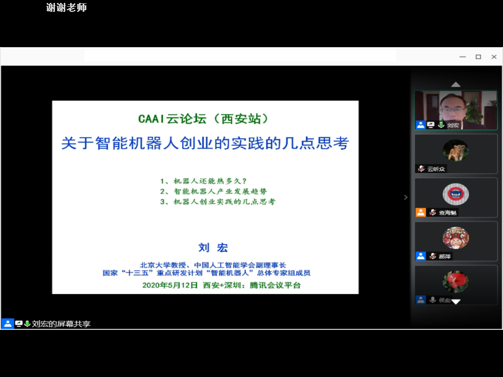 随后,西安市科学技术局李志军局长;浙江大学求是特聘教授,国家杰出青年基金获得者,教育部人工智能科技创新专家组工作组组长吴飞教授;香港城市大学电脑学系讲座教授,IEEE Fellow张青富教授;CAAI副理事长,北京大学教授,国家“万人计划”首批入选专家,CAAI Fellow刘宏教授;CAAI副理事长,清华大学教授,IEEE/CAAI Fellow孙富春教授;诺丁汉大学计算机学院屈嵘教授;商汤科技联合创始人、技术执行总监马堃;西安电子科技大学教授,国产的菊眼屁股HD负责人,智能感知与图像理解教育部重点实验室副主任侯彪教授8位专家云端开讲。
