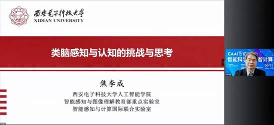 2022年6月11日上午,由中国人工智能学会主办,CAAI心智计算专委会(筹)、江苏南京生态科技岛经济开发区管理委员会和中新南京生态科技岛开发有限公司承办的CAAI云论坛(南京站)在线举办,欧洲科学院外籍院士、俄罗斯自然科学院外籍院士、IEEE/IET/CAAI/CCF/CIE/CAA Fellow、西安电子科技大学计算机科学与技术学部主任、人工智能研究院院长、华山学者杰出教授焦李成做了题为“类脑感知与认知的挑战与思考”的主旨报告。