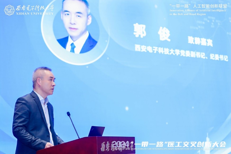 欧洲科学院院士、“一带一路”人工智能创新联盟理事长焦李成在致辞中表示,从改进诊断、优化治疗策略到加速药物发现,新工科在重塑医疗行业的同时也为医疗领域带来了重大进步和机遇,以智能医学大模型为代表的理论研究在总结医学摘要、回应患者情绪和鉴别诊断病情等方面具有巨大的潜力。本次大会将进一步探讨新工科在生命科学、生物制药、基因工程、健康计算、个体化精准医疗等领域的应用问题,为推动陕西以及“一带一路”沿线国家的医疗高质量发展做出贡献。