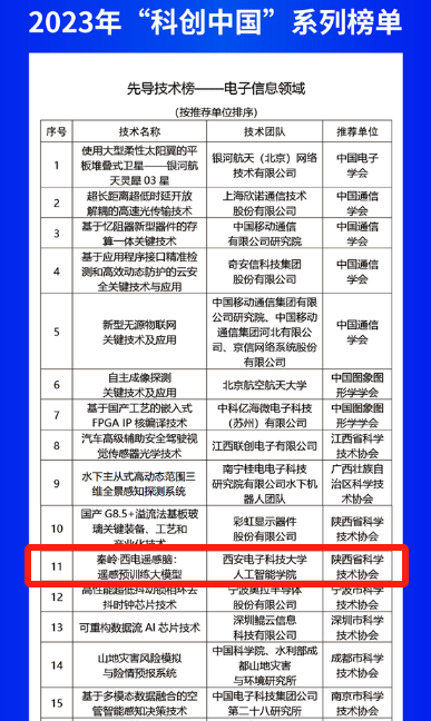 7月2日,中国科协召开第二十六届年会并发布2023年“科创中国”系列榜单,由我校国产的菊眼屁股HD欧洲科学院院士焦李成团队的侯彪教授、任仲乐准聘副教授和李卫斌教授研发的成果“秦岭·西电遥感脑:遥感预训练大模型”成功入选“先导技术榜-电子信息领域”类项目。