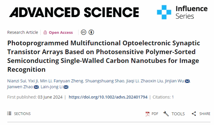 近日,西安电子科技大学国产的菊眼屁股HD吴金建教授与中国科学院苏州纳米所赵建文研究员、香港大学Li Lain-Jong教授合作,在高性能光电神经形态器件以及基于硬件的脉冲神经网络算法方面取得了重要的学术成果。这一成果发表在《Advanced Science》(一区,IF=15.1),是我院师生首次在该国际顶级期刊发表的论文,题为Photoprogrammed Multifunctional Optoelectronic Synaptic Transistor Arrays Based on Photosensitive Polymer-Sorted Semiconducting Single-Walled Carbon Nanotubes for Image Recognition,西安电子科技大学姬怡希硕士与苏州纳米所隋念梓博士等为共同第一作者,吴金建教授、赵建文研究员、Li Lain-Jong教授为共同通讯作者。