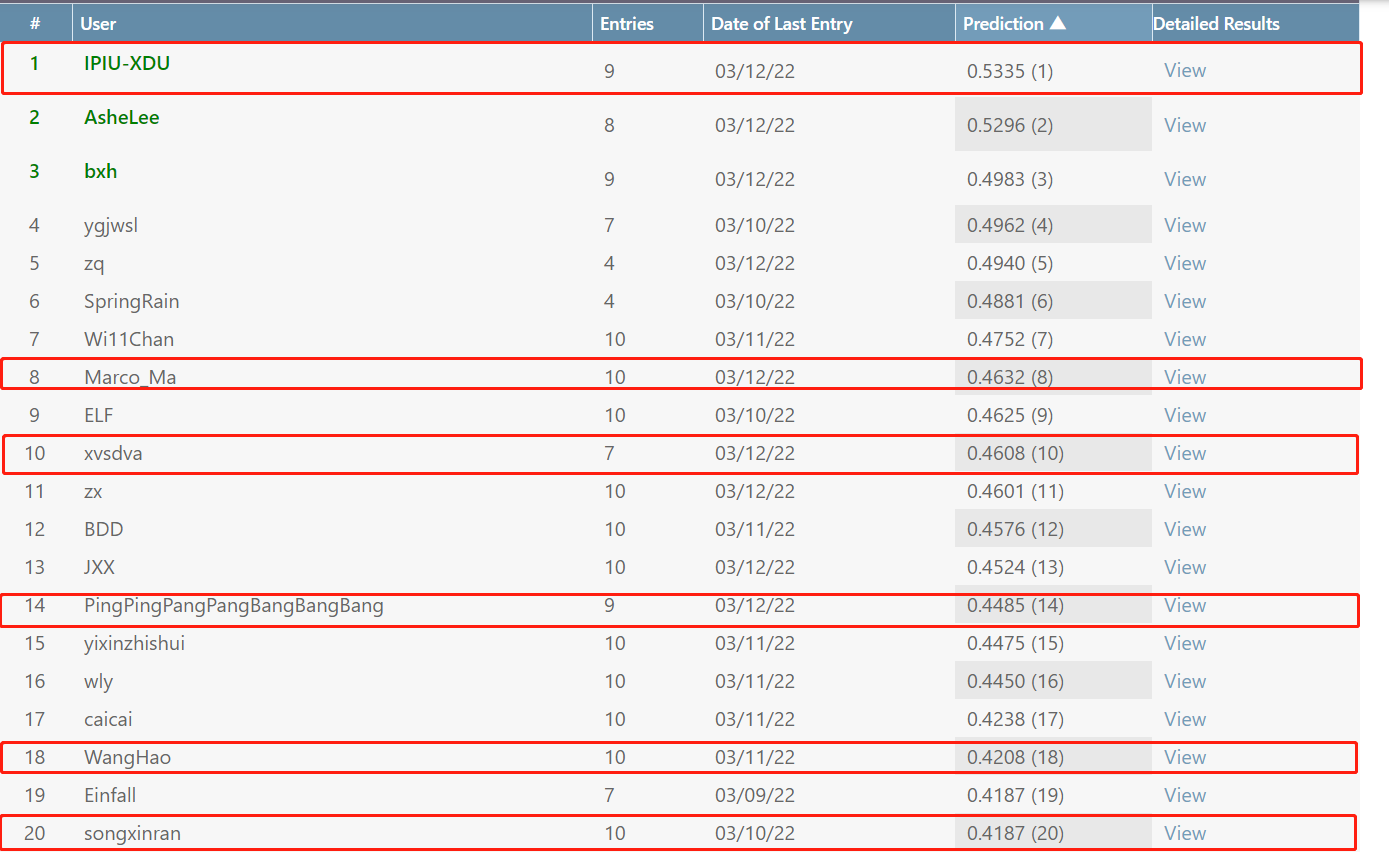 排行榜前20(标记部分为学院参赛队伍)