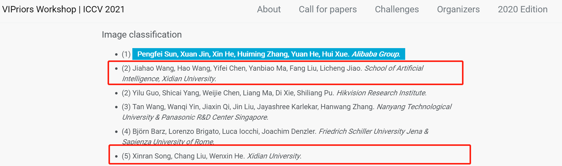 赛题2:ICCV 2021VIPviors Workshop:Visual Inductive Priors for Data-Efficient Computer Vision challenges(三个赛道五支队伍以1冠3亚以及第五名成绩入榜)