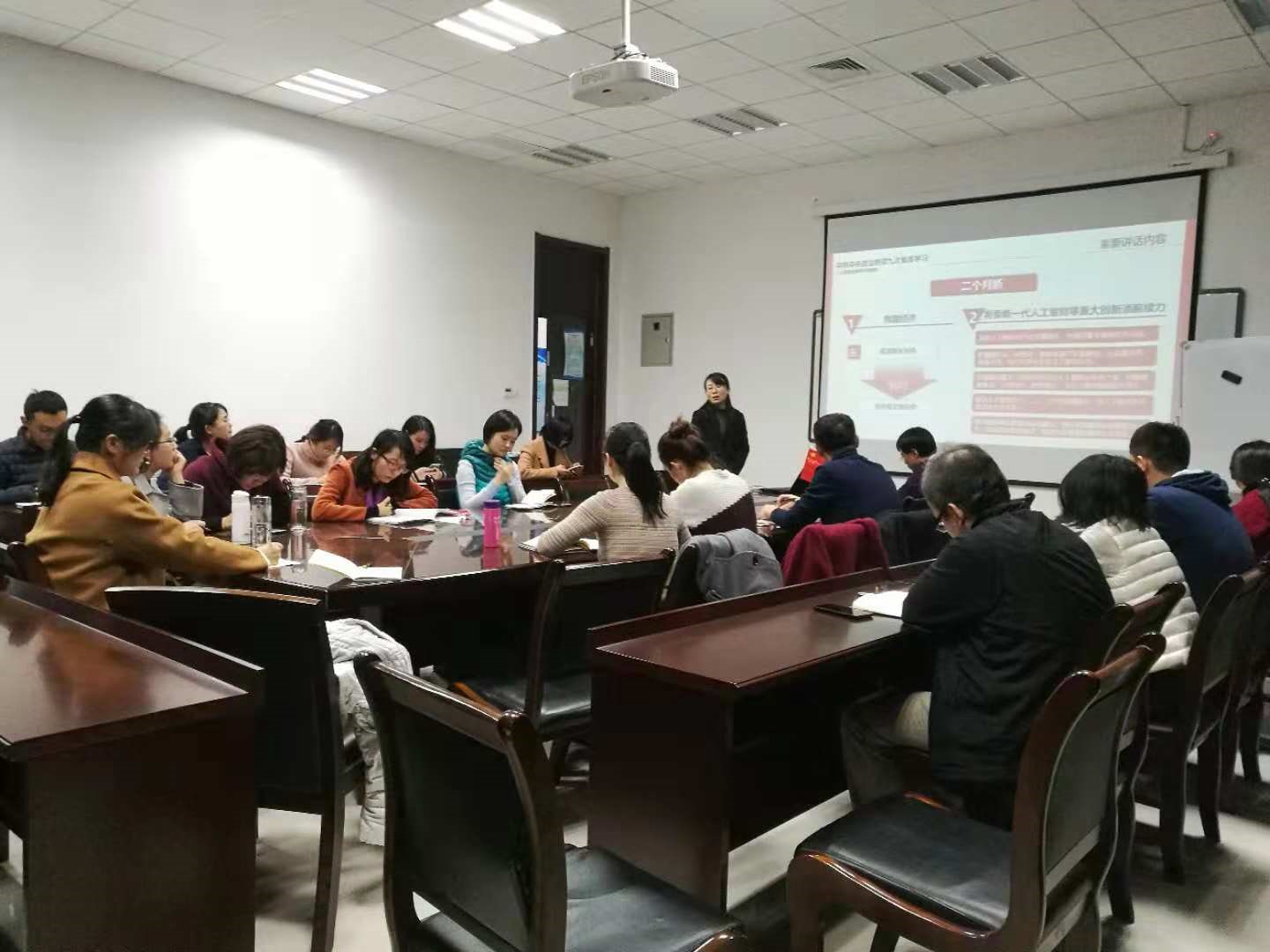 会上,支部党员畅所欲言,就如何打造人工智能高层次人才培养平台和实现多样化创新人才的培养展开了热烈讨论。李阳阳老师介绍了自己将人工智能理论与工业生产结合并用于培养学生理论素养和实践能力的工作经验;慕彩虹老师从人工智能多学科综合、高度复杂的特点讨论了人工智能专业课程设置和教材规划;王晗丁和陈璞花老师从产业需求和成果转化的角度探讨了横向合作对学科发展和人才培养的重要性。最后,大家一致认为应该加快转变教学思维和理念,主动以适应人工智能行业产业的快速发展和变化,推动人工智能理论研究与经济社会发展深度融合。