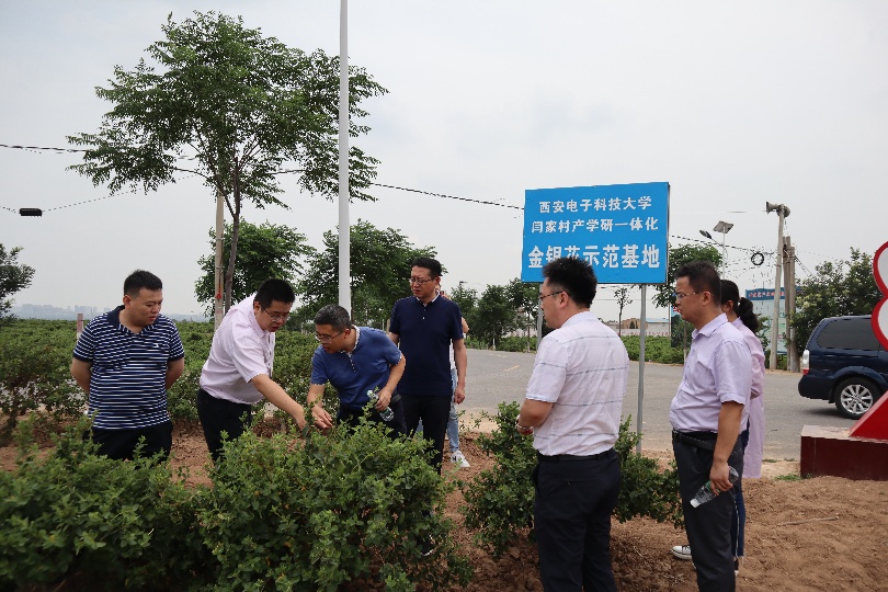 学院党委书记魏峻、副书记高晖及校扶贫办主任沈强一行首先来到“西安电子科技大学闫家村金银花产学研一体化示范基地”,走进田间地头实地了解金银花种植情况和技术需求,就航天宏图遥感技术的农业应用进行实地调研。三方在闫家村脱贫攻坚作战室召开科技扶贫应用座谈会,航天宏图西安分公司负责人、我校校友薄一民带领技术人员,向参会同志介绍了公司有关农业项目和遥感技术的应用前景。学校、企业以及蒲城地方三方还就进一步深化合作、推动项目落地落实,更好的服务蒲城金银花产业发展进行了深入交流。