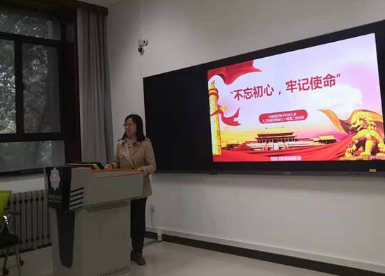 最后,由赵静老师为同学们作此次主题教育的总结讲评,她首先为各位党员分享了她工作中扶贫的故事,同时教育支部党员要热爱自己的学习、工作,干一行爱一行;对待所有事情,前提是要用心。