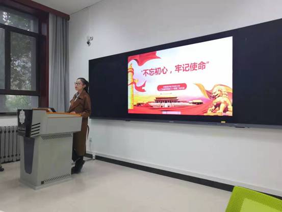 接下来由支部书记何爱媛为支部党员进行了主题党课的分享,主要围绕共产党人的初心和使命,介绍了获得共和国勋章的黄旭华院士和屠呦呦女士的在艰苦的环境中依然做出巨大成就的事迹,以此来激励广大党员要有攻坚克难的决心,要有担负国家和民族未来的责任感和使命感。