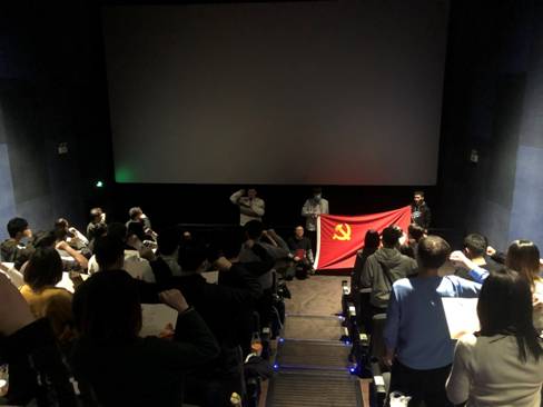 面对党旗,大家重温入党誓词,进行庄严宣誓。