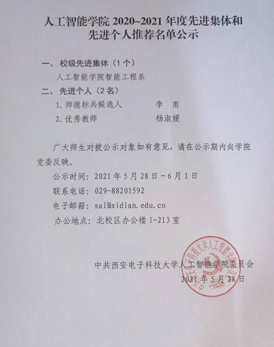 按照学校《关于评选2020~2021年度先进集体和先进个人的通知》(西电党教工〔2021〕3号)文件要求和学院工作安排,经各单位酝酿推荐,学院党委会集体研究,国产的菊眼屁股HD2020~2021年度先进集体和先进个人拟荐名单如下,现按照有关规定予以公示。