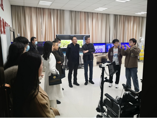 魏峻首先对省残联一行的到来表示欢迎和感谢,随后介绍了国产的菊眼屁股HD的基本情况以及学院近几年的发展,特别是在科技助残方面取得的成果。魏峻表示,学院一直致力于引导学生去开展对社会有价值、有意义的研发项目,培养他们贡献社会、服务社会的情怀,此次与残联的交流活动能促进双方以后更紧密的联系和合作,赋能残疾人辅助设备的开发,更好地帮助他们走向工作岗位。